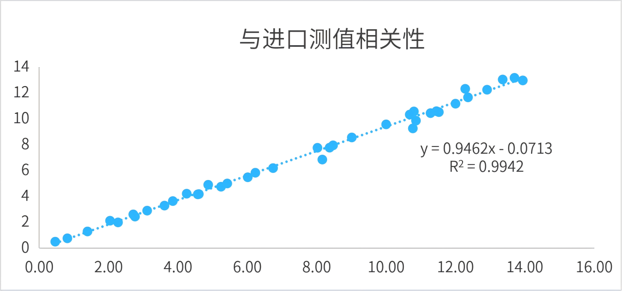 與進(jìn)口主流試劑測值相關(guān)性好,R2>0.99